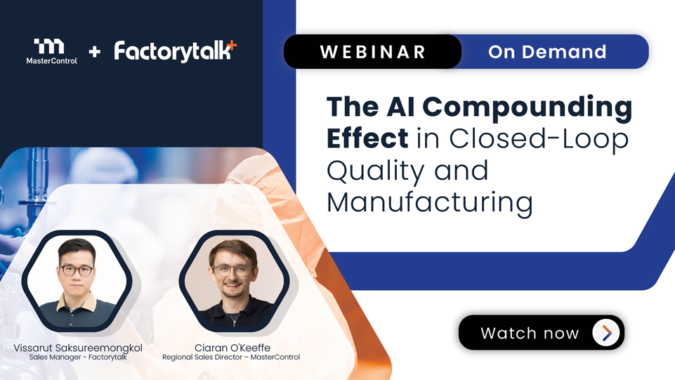 In this on-demand webinar, Factorytalk, together with MasterControl, explores how AI creates exponential value when Quality and Manufacturing operate in a fully connected ecosystem.